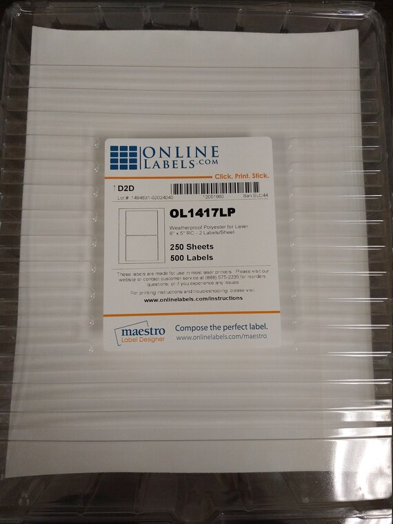 Clear Waterproof Labels - Laser Printing | SheetLabels.com® Crystal clear gloss waterproof & weatherproof labels, printable with laser printers. Lowest price, same day delivery, free shipping on most orders! ... Label Articles Shipping Calculator Bulk Labels Pricing Sticker Printing Design & Templates Free Label Printing Templates Free Samples; Contacts (888) 391-7165. Weatherproof Polyester Labels (Laser Only) - Worldlabel.com Our White Weatherproof / Waterproof Laser Label Sheets (LP) are made for you with a bright polyester material. Ideal for uses that may come into contact with moisture. A UV inhibitor enables the material to withstand "some" direct sunlight. Durable with a strong permanent adhesive. *Adjusting printer settings may be needed.* Laser only Amazon.com: weatherproof labels laser 1-48 of 657 results for "weatherproof labels laser" RESULTS Price and other details may vary based on product size and color. Avery Waterproof Address Labels with Sure Feed & TrueBlock 1" x 2-5/8", 1,500 White Laser Labels (5520) 594 $3598 ($0.02/Count)$70.71 Save more with Subscribe & Save Get it as soon as Tue, Sep 6 FREE Shipping by Amazon Avery Waterproof Laser Shipping Labels with Ultrahold Permanent ... - Quill Order Avery Waterproof Laser Shipping Labels with Ultrahold Permanent Adhesive, 3-1/3" x 4", 300 Labels Per Pack (05524) today at Quill.com and get fast shipping. Stack coupons to get free gifts & extra discounts! ... Series or Collection: Weatherproof : True Color: White : Weight: 1.40 lbs. per Box: More In This Collection.