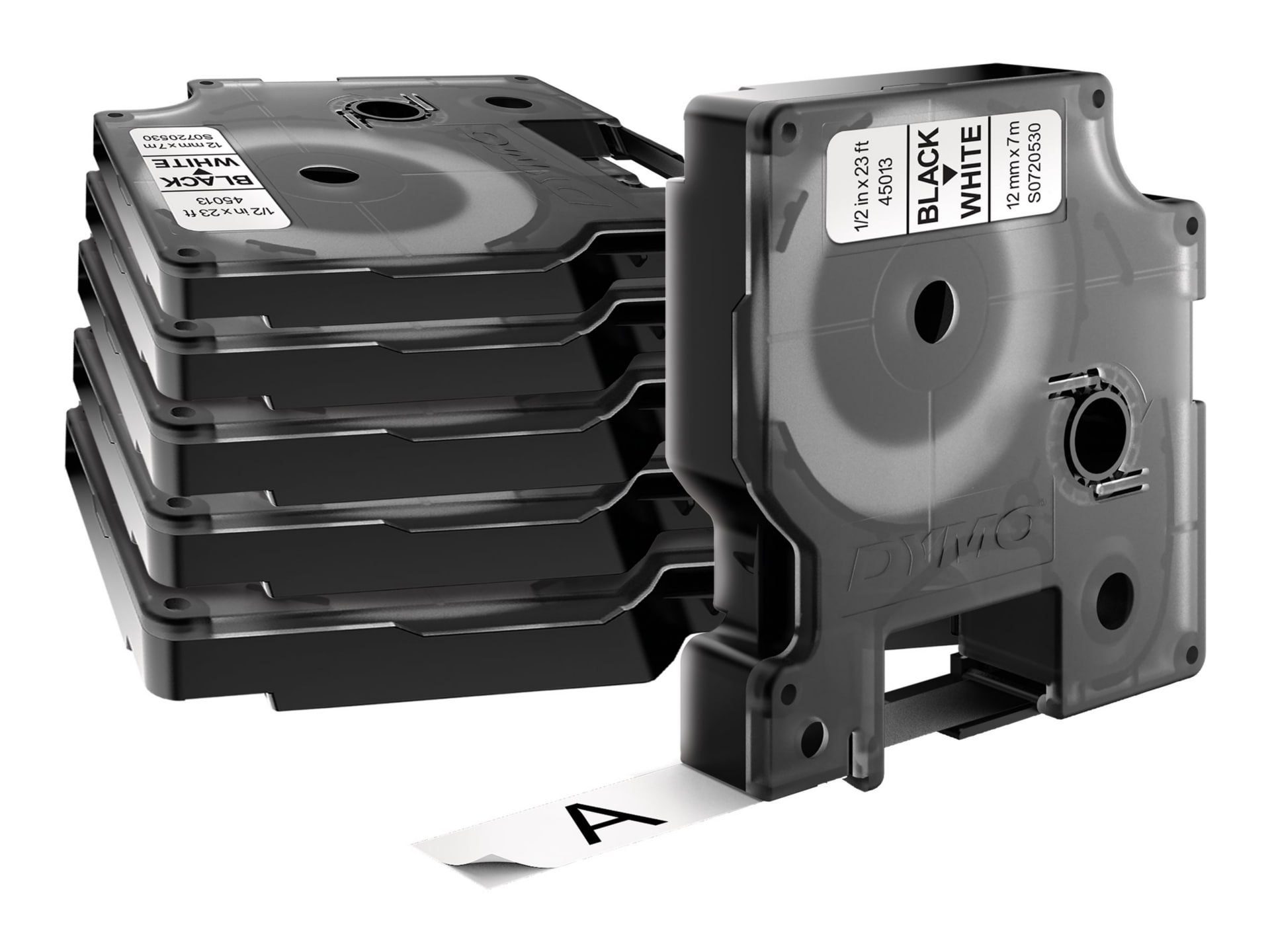 DYMO Standard D1 Labeling Tape for LabelManager Label Makers, Black Print on White Tape, 1/2'' W x 23' L, 1 catridge (45013)