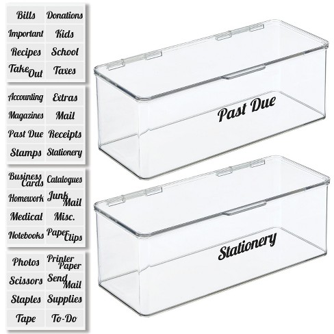 mDesign Plastic Office Storage Organizer Bin with Pull Out Drawer and Labels - Cabinet, Desk, Shelf, Cupboard, Cabinet, or Closet Organization - ...