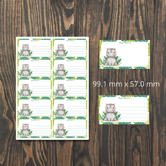 Hana Hippo self adhesive please deliver to.. labels, 10 labels per sheet, 99.1 x 57.0 mm rectangular stickers with rounded corners